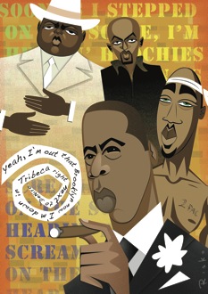 As the Golden Age ended, hip-hop’s formal revolution was giving way to a narrative revolution. So-called gangsta rappers downplayed wordplay (without, of course, forswearing it) so they could immerse listeners in their first-person stories of bad guys and good times. Shakur and the Notorious B.I.G. created two of the genre’s most fully realized personae; when they were murdered, in 1996 and 1997, respectively, their deaths became part of their stories. (Both crimes remain unsolved.) As the anthologizers blast through the nineties (“Rap Goes Mainstream”) and the aughts (“New Millennium Rap”), their excitement starts to wane. They assert that the increasing popularity of hip-hop presented a risk of “homogenization and stagnation,” without pausing to explain why this should be true (doesn’t novelty sell?), if indeed it was. There is little overt criticism, but some rappers get fulsome praise—“socially conscious” is one of Bradley and DuBois’s highest compliments—while others get passive-aggressive reprimands (“Disagreement remains over whether Lil’ Kim has been good or bad for the image of women in hip-hop”). Perhaps the form of their project dictates its content. They are sympathetic to rappers whose lyrics survive the transition to the printed page; the verbose parables and history lessons of Talib Kweli, for instance, make his name “synonymous with depth and excellence,” in their estimation. But they offer a more measured assessment of Lil Wayne, praising his “play of sound” (his froggy, bluesy voice is one of the genre’s greatest instruments) while entertaining the unattributed accusation that he may be merely “a gimmick rapper.” Any anthology requires judgments of taste, and this one might have been more engaging if it admitted as much.