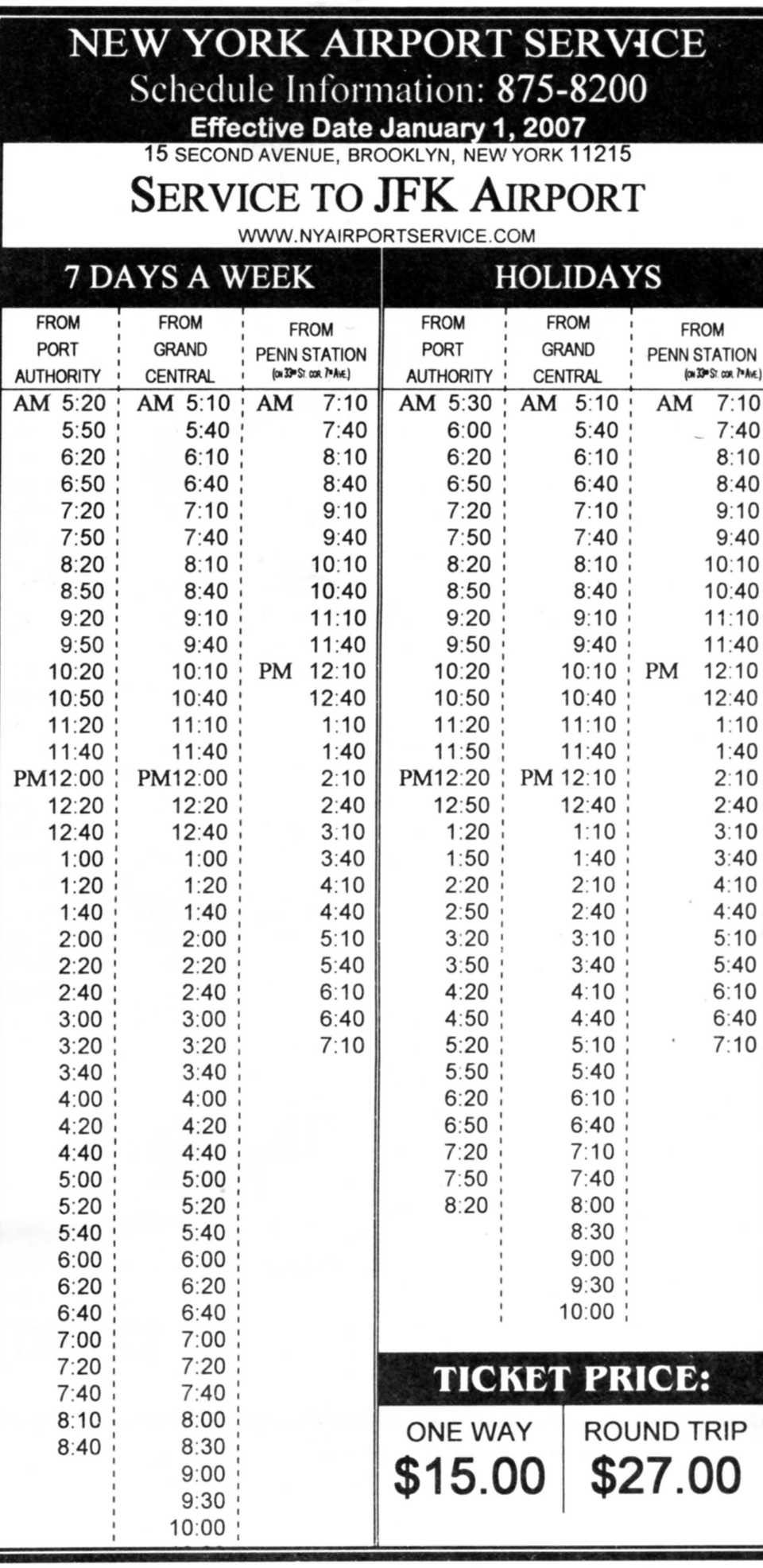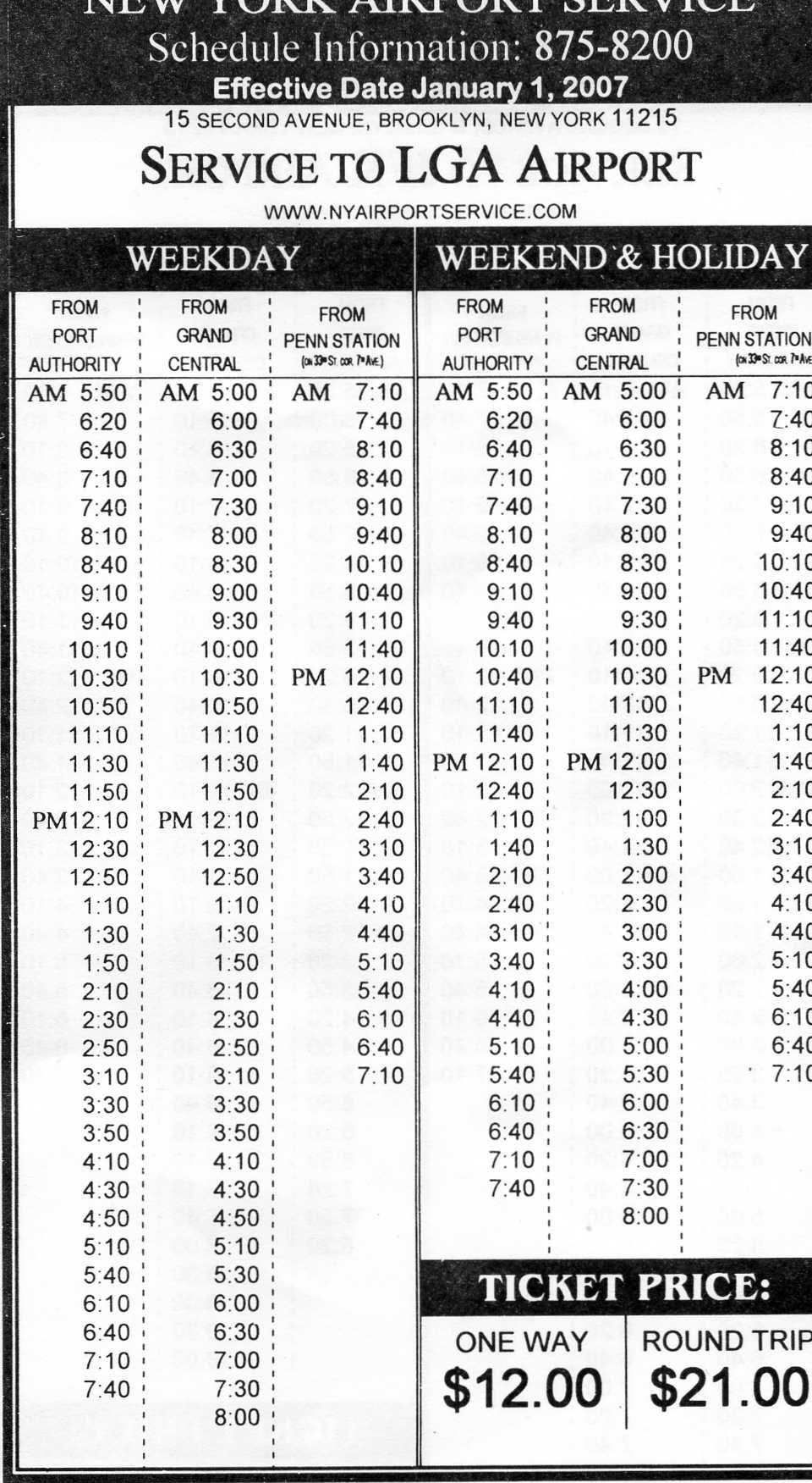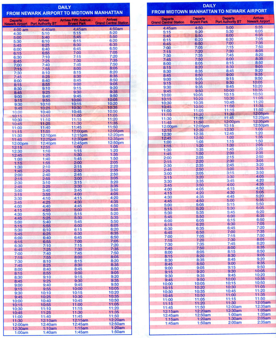 Some HELP!! Bus schedule from airports to Grand Central and Port Authority: